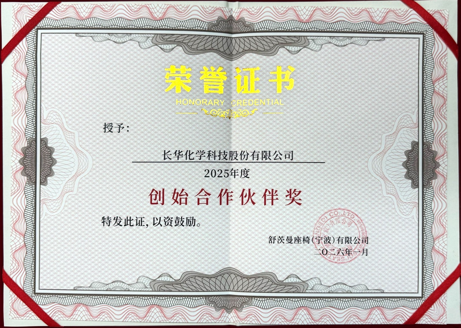 此次获颁“创始合作伙伴奖”,不仅代表了舒茨曼座椅对长华化学产品质量、交付与协同创新能力的充分肯定,更象征着双方合作已步入战略共创、价值共生的新阶段。